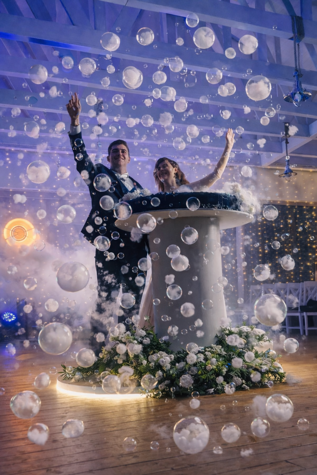- Jagoda P."Ciężki dym na naszym weselu to był strzał w dziesiątkę! Efekt był niesamowity. Dym pięknie unosił się nad parkietem, a nagrania wyszły bajecznie."
